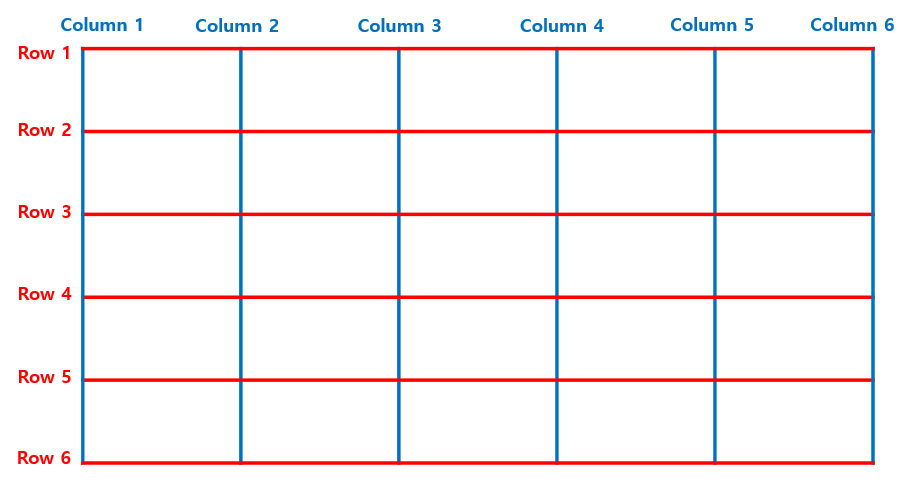 grid-template-rows는 행(row)의 배치를 결정하고, grid-template-columns는 열(column)의 배치를 결정한다.