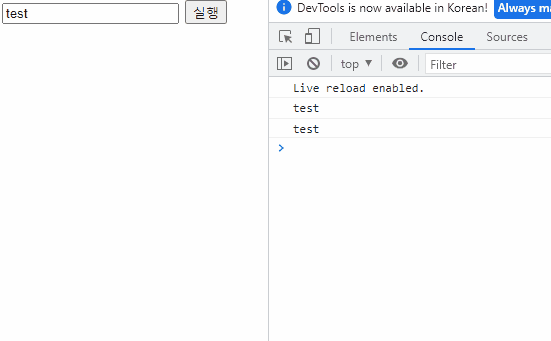 이번에는 val으로 값을 변경하였다. 프로퍼티가 변경되는 것이고, value 속성값은 변경하지 않았기 때문에 처음에 지정해준 test 그대로 존재한다.